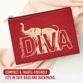 Constructed from durable materials, the bag features a sturdy metal zipper for secure closure and a wipe-clean black interior lining. Its size offers ample storage for makeup, toiletries, or tech accessories. The eco-friendly print ensures vibrant and lasting colors, making this bag both functional and visually appealing.