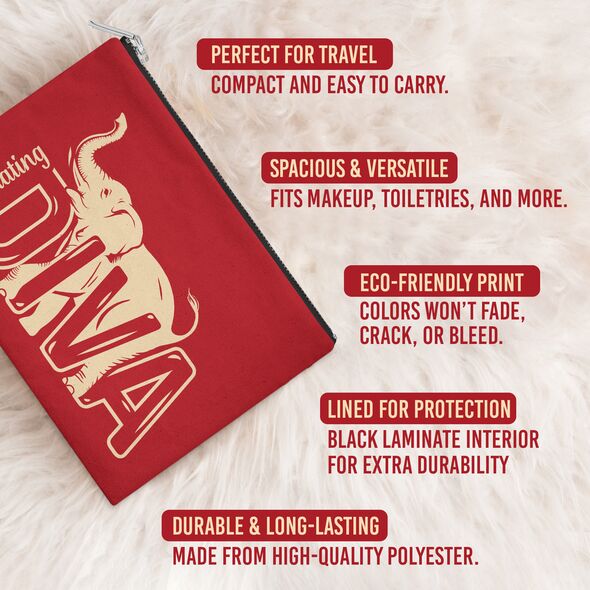 This 12.5” x 8.5” makeup bag combines practicality and durability with a bold, vibrant design. Perfectly sized to hold cosmetics, toiletries, or other essentials, its spacious interior ensures you can stay organized while on the go. Made from high-quality materials, it features a secure metal zipper and a black laminate lining for easy maintenance, offering both functionality and style.