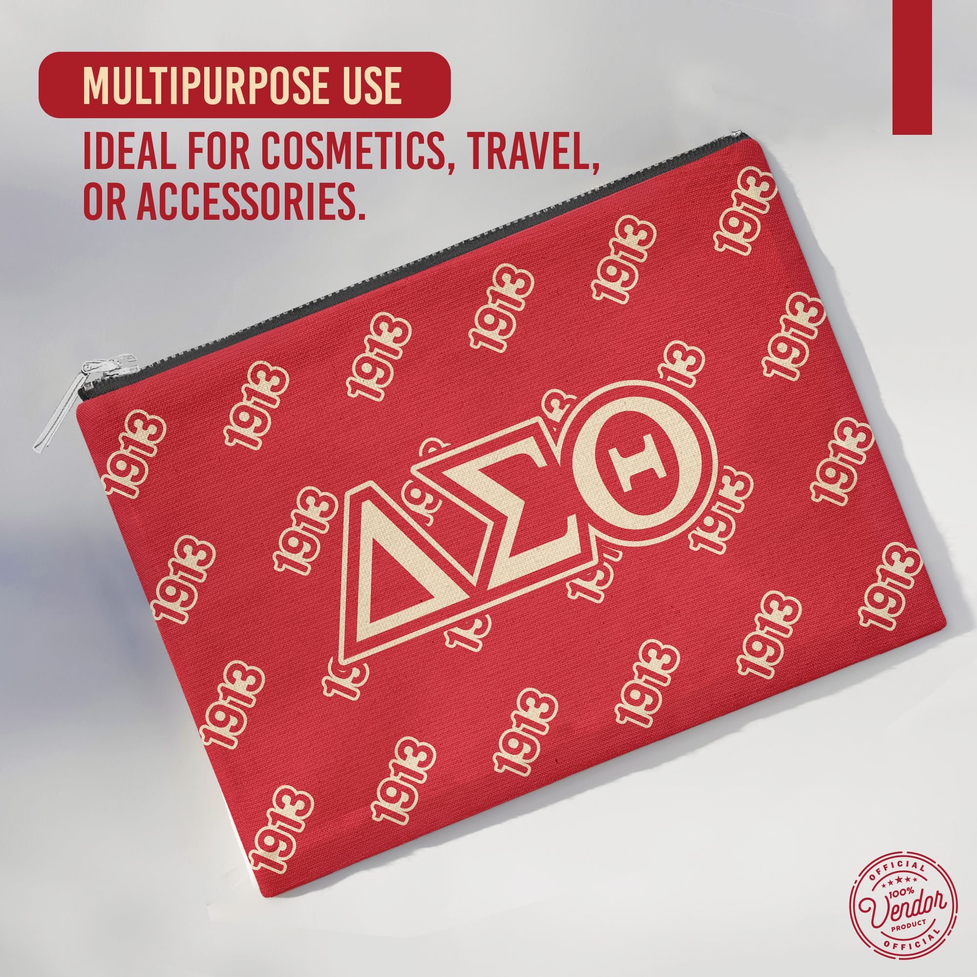 This 12.5” x 8.5” makeup bag combines practicality and durability with a bold, vibrant design. Perfectly sized to hold cosmetics, toiletries, or other essentials, its spacious interior ensures you can stay organized while on the go. Made from high-quality materials, it features a secure metal zipper and a black laminate lining for easy maintenance, offering both functionality and style.