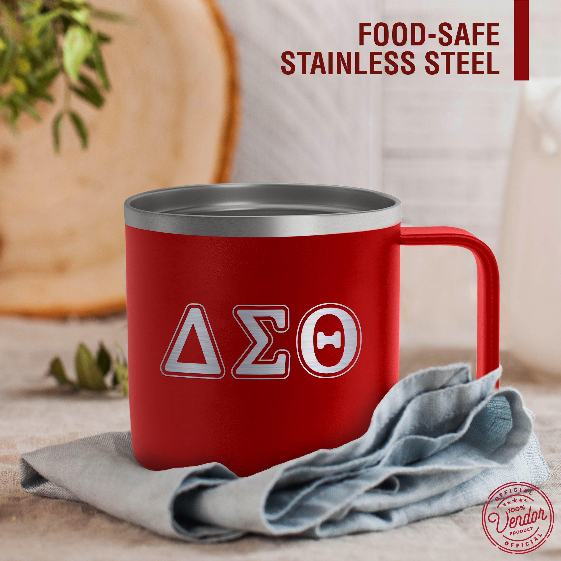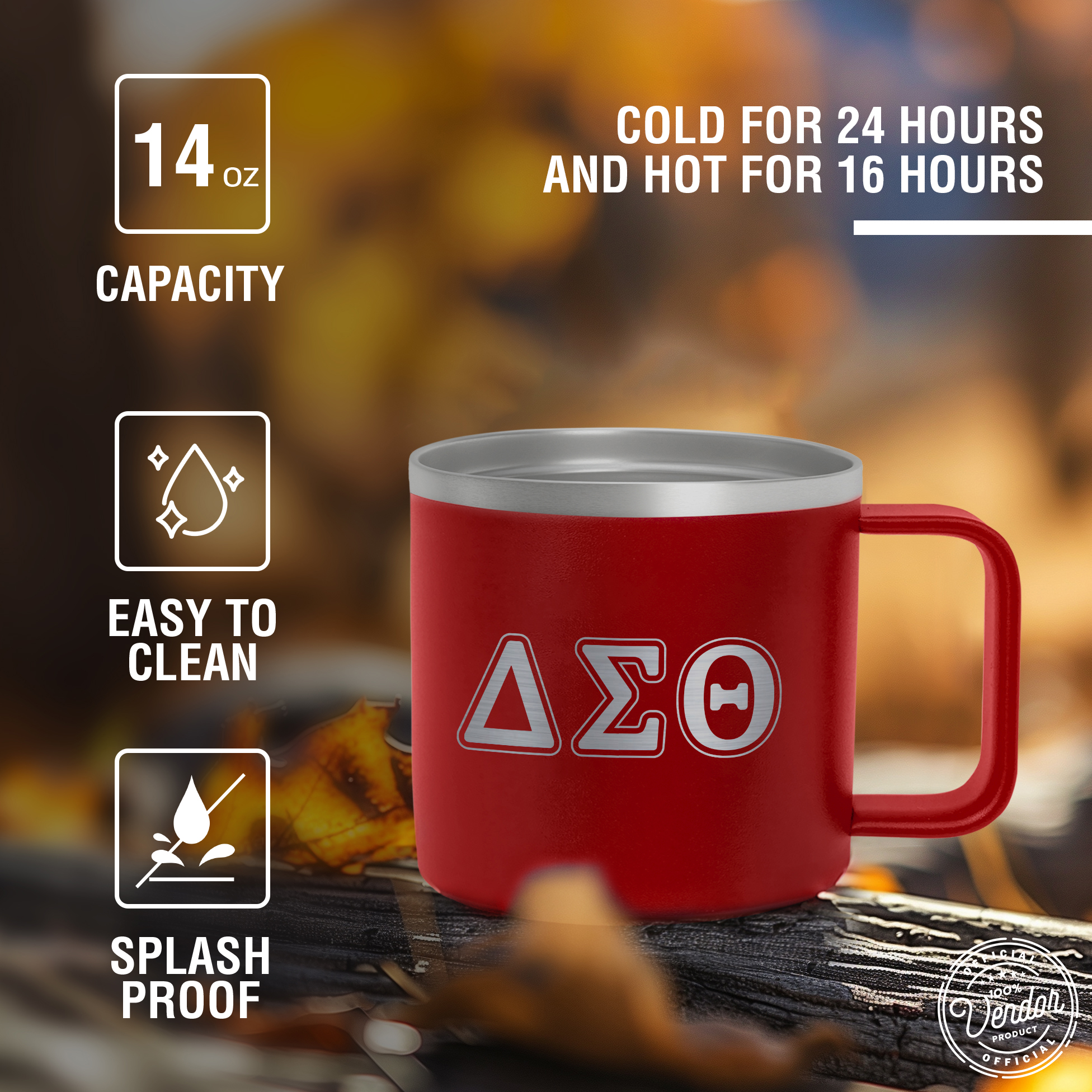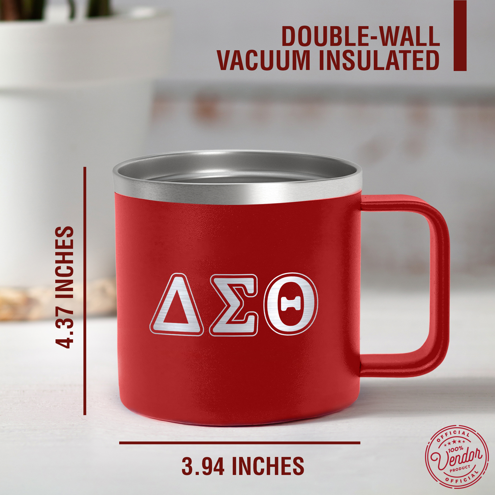HIGH QUALITY FOOD GRADE STAINLESS STEEL: This 14 oz mug is crafted from food-grade stainless steel to resist rust, corrosion, and odors. The durable Red powder-coated exterior offers a comfortable grip and a vibrant finish that represents your sorority with excellence.