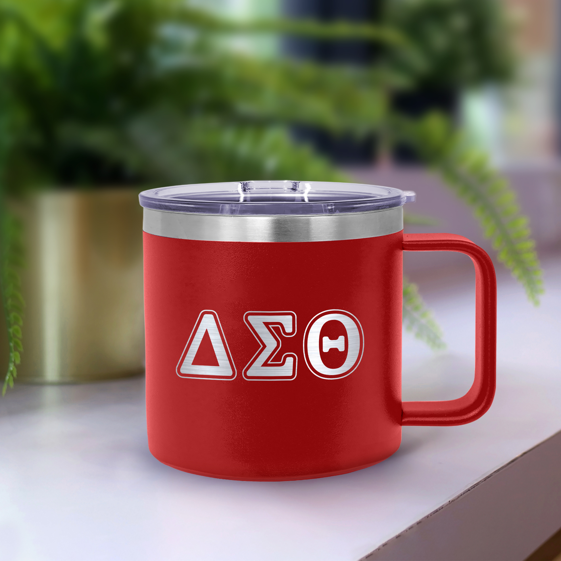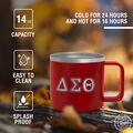 Showcase your pride for Delta Sigma Theta Sorority, Inc. with an insulated mug built for reliability. This 14 oz vessel features a vibrant Red powder-coated exterior and a permanent laser-engraved design that reveals the silver metal underneath. Because the artwork is etched directly into the steel, it will not peel, fade, or crack, making it a lasting piece of paraphernalia for any member.