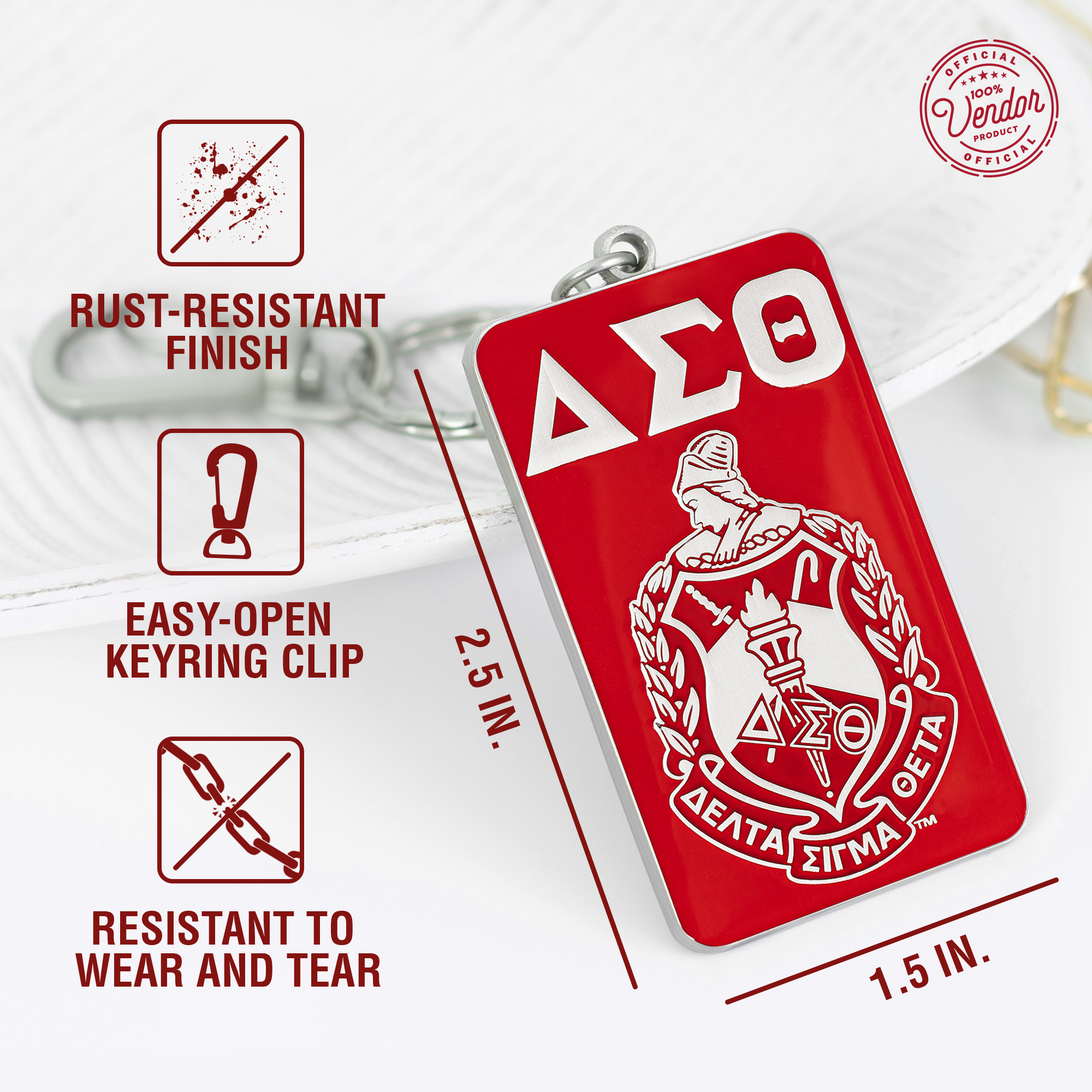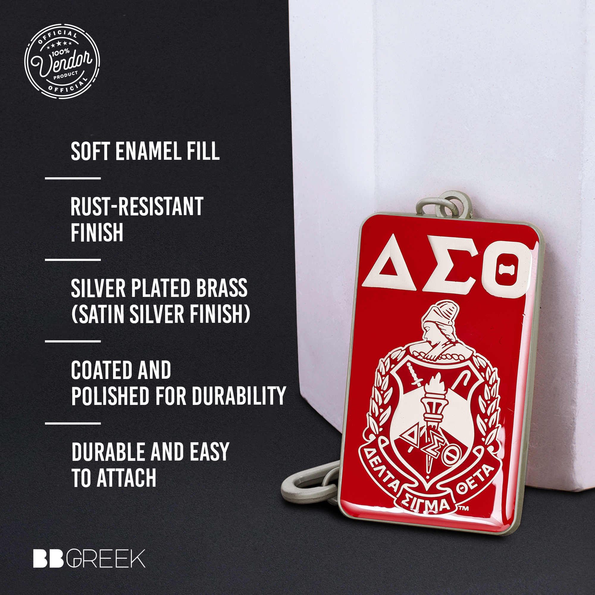 This enamel keychain is designed to represent the legacy and values of Delta Sigma Theta Sorority, Inc. Made with high-quality materials and a detailed design, it serves as a durable and meaningful accessory. The silver-plated brass construction with a satin silver finish ensures a refined look, while the soft enamel fill enhances the intricate detailing. Built for everyday use, this keychain provides both style and functionality. As an Official Vendor of Delta Sigma Theta Sorority, Inc., this keychain meets the sorority’s quality and design standards, ensuring authenticity and adherence to official guidelines.