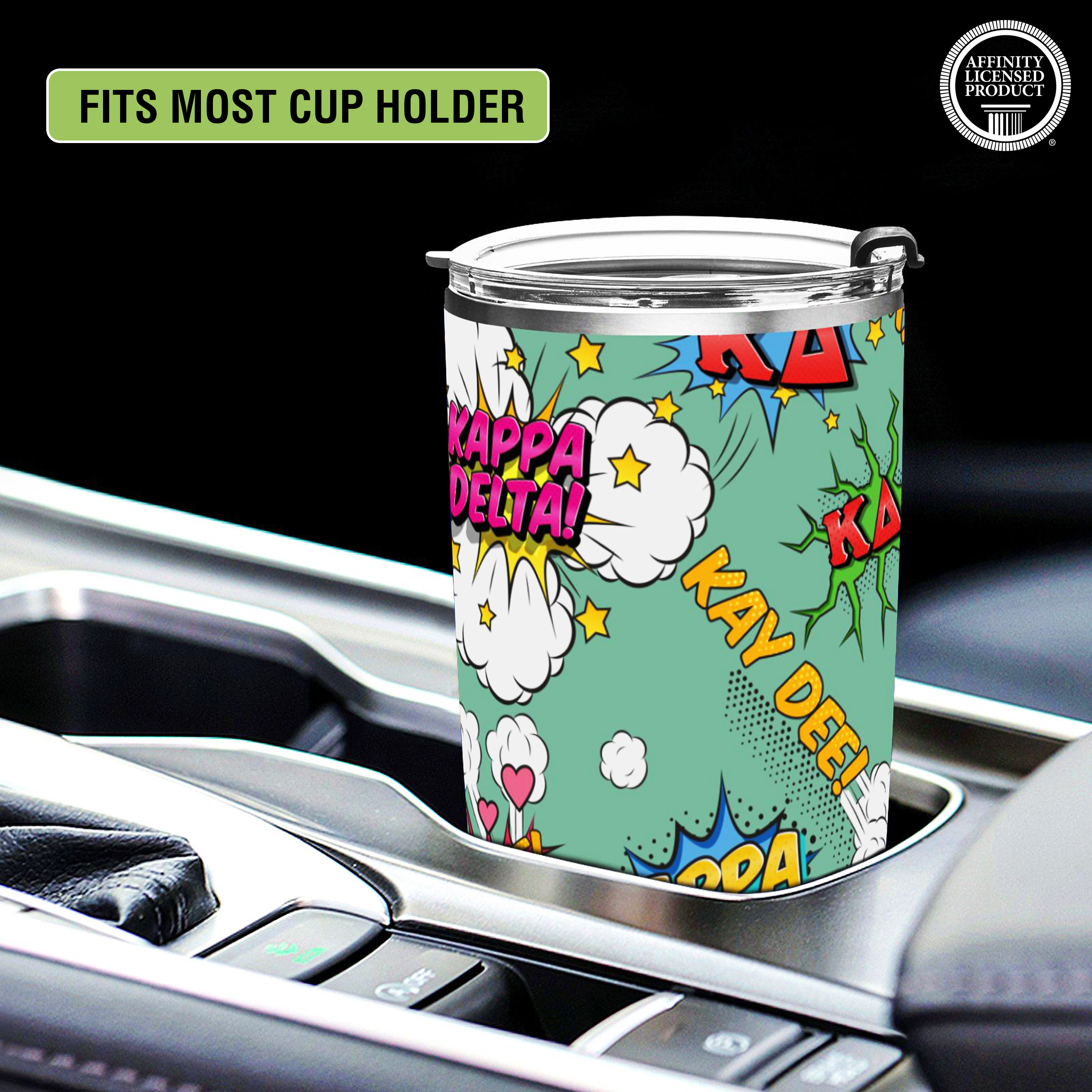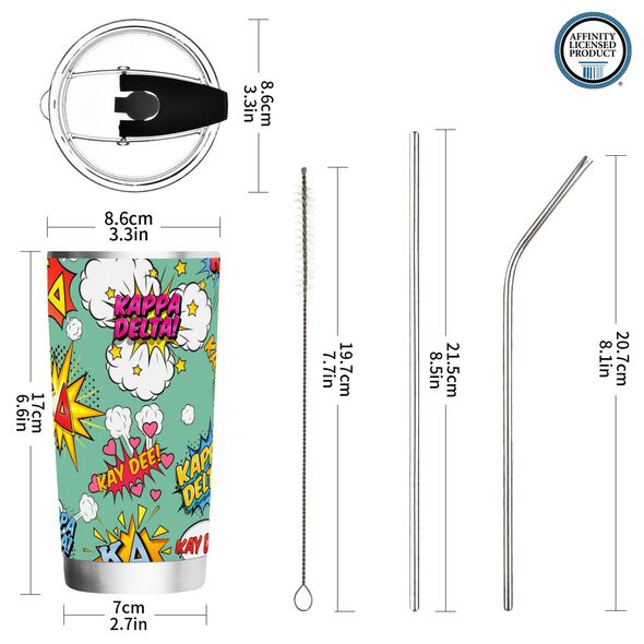 KAPPA DELTA TUMBLER: This 20 oz stainless steel tumbler features the elegant "Comic Bang" design, reflecting the values of Kappa Delta Sorority. Its vibrant and stylish design adds charm and practicality to daily hydration routines.