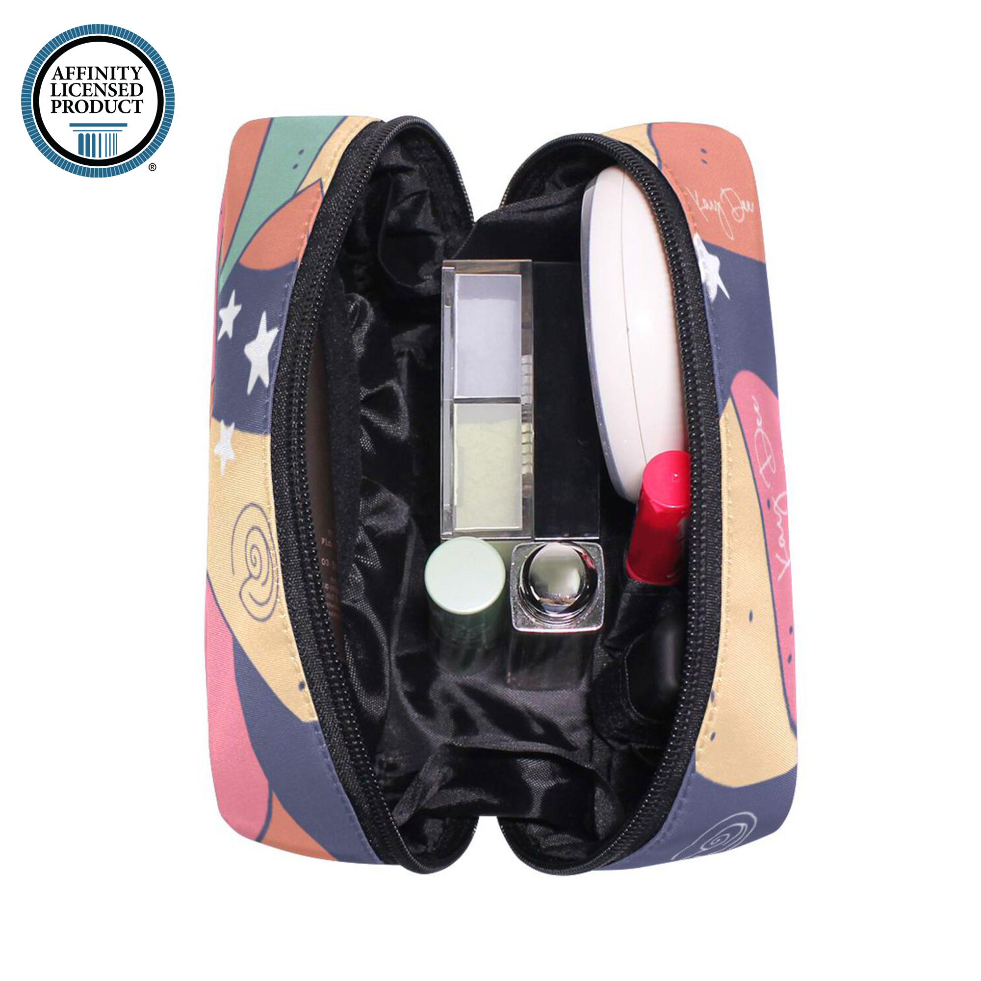 Delight someone you adore with this awesome cosmetic case. Performing double duty as a carrier for makeup, or the random knick knacks that find their way into a purse or backpack, this bag is sure to delight. We promise you won't find anything like this in stores and the person fortunate enough to be bestowed with such a gift will always smile when they use it.