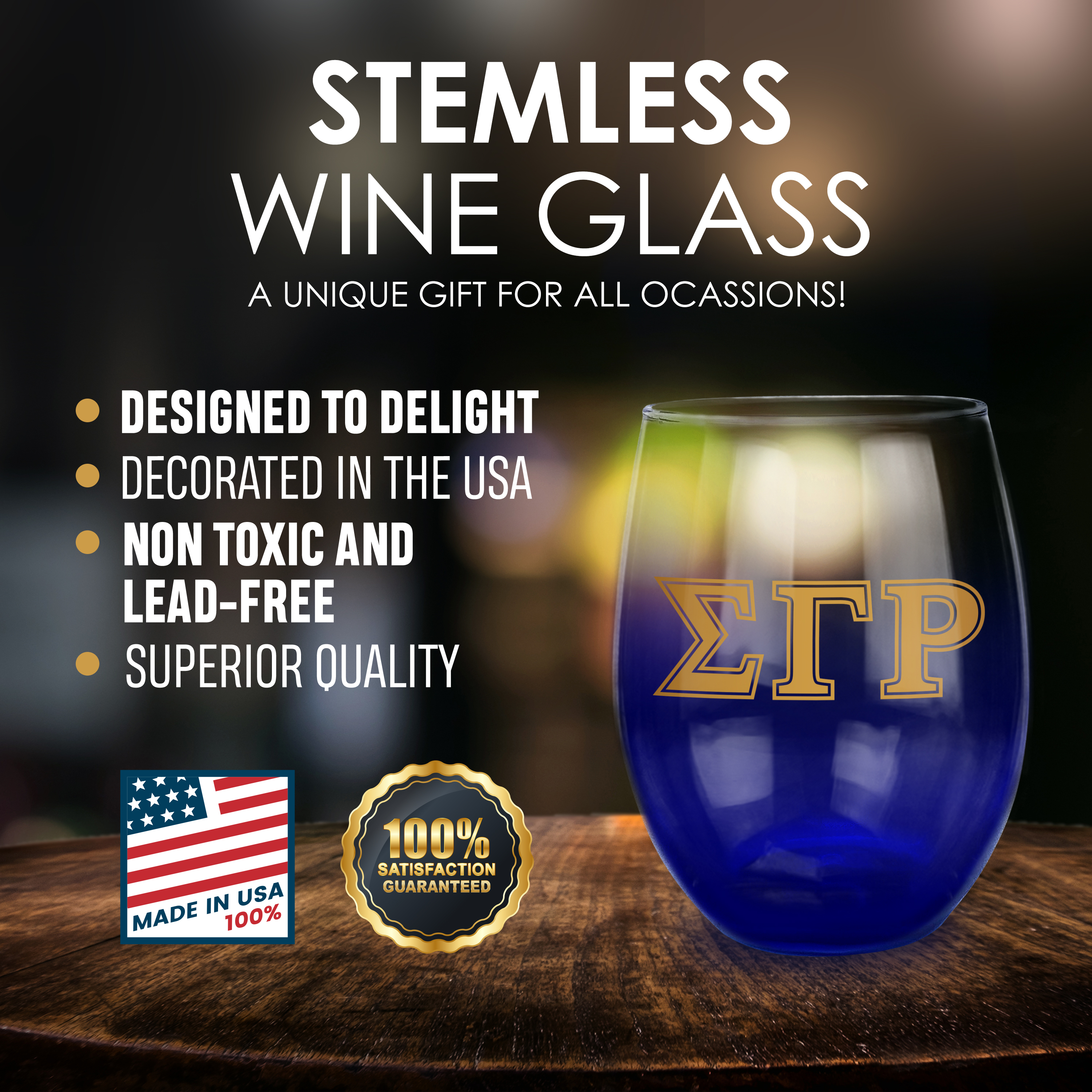 Treat this as an elegant Sigma Gamma Rho sorority gift or add this to your barware collection that stands out on your house decor. Add these colorful set of ombre stemless Wine Glasses to your cart today!