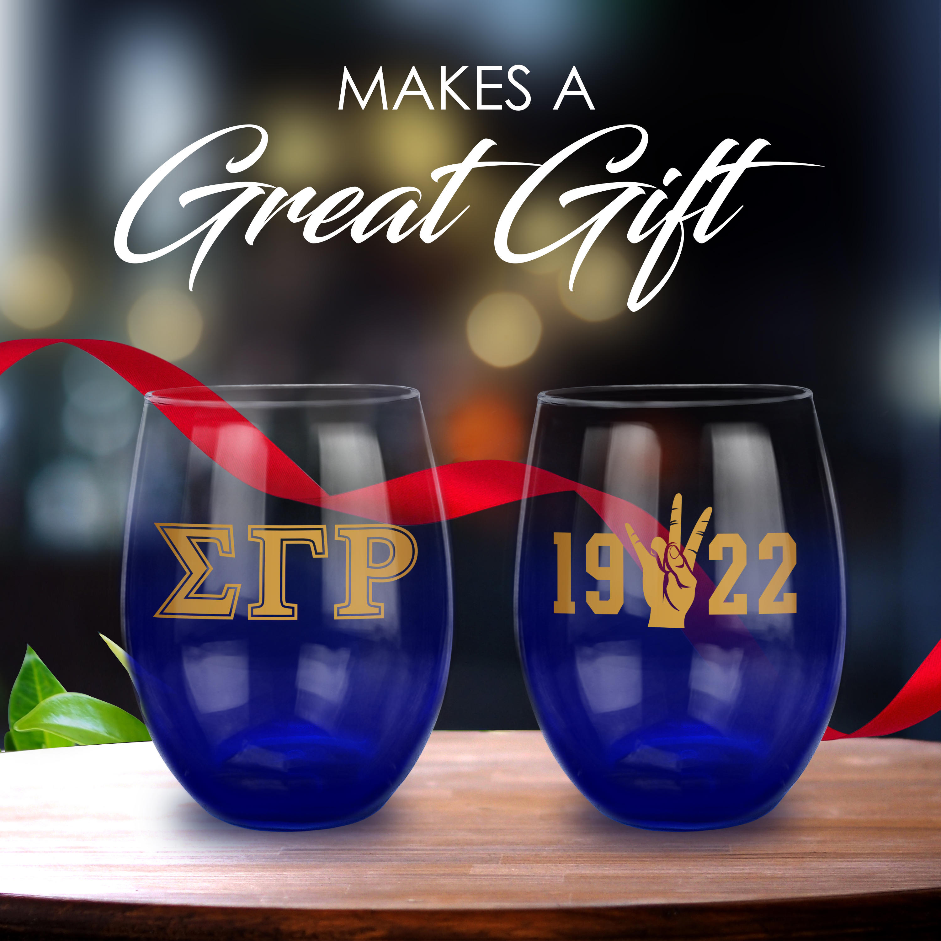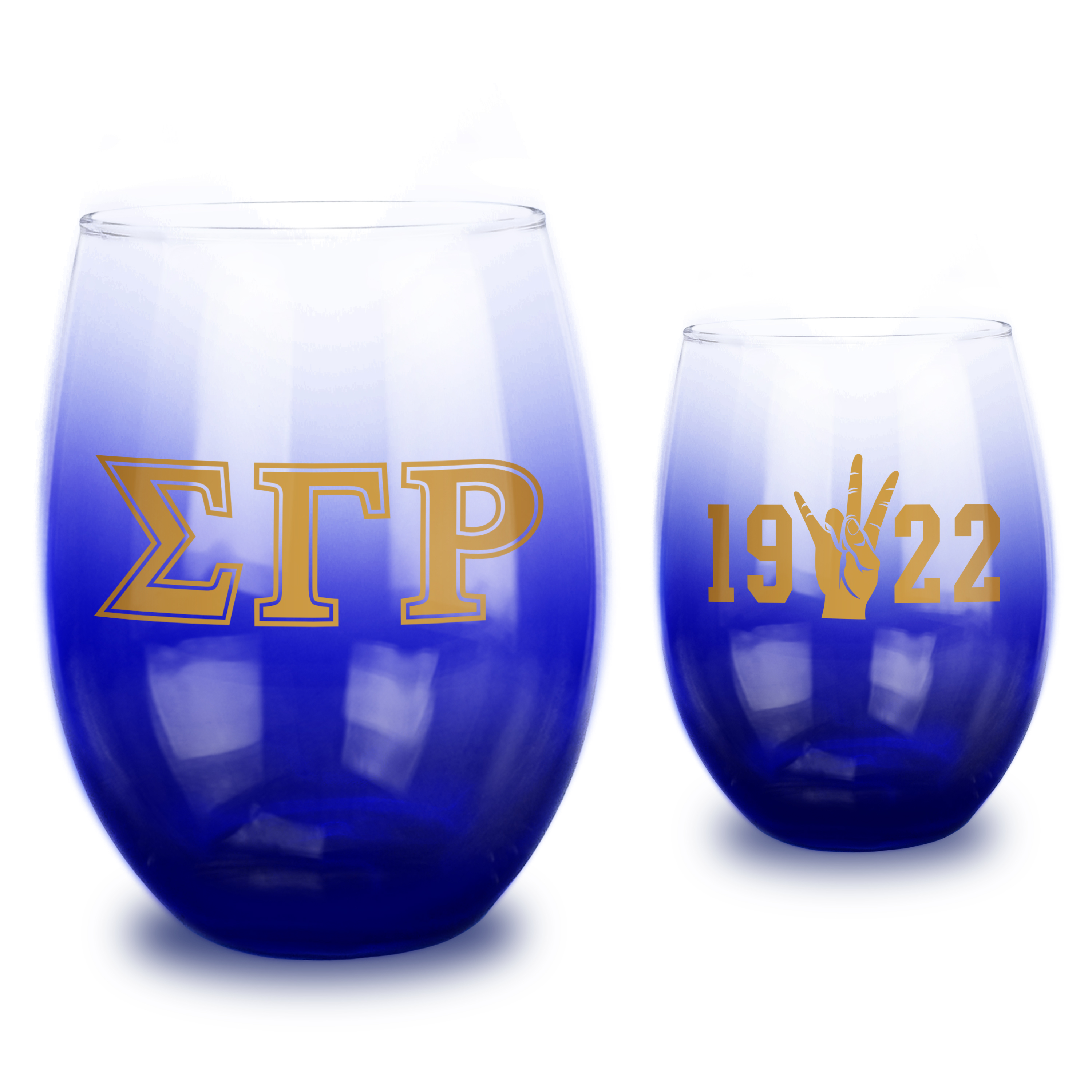 These Sigma Gamma Rho Set of 2 Blue Ombre 21oz stemless wine glasses is the perfect gift for every SGRho woman.
