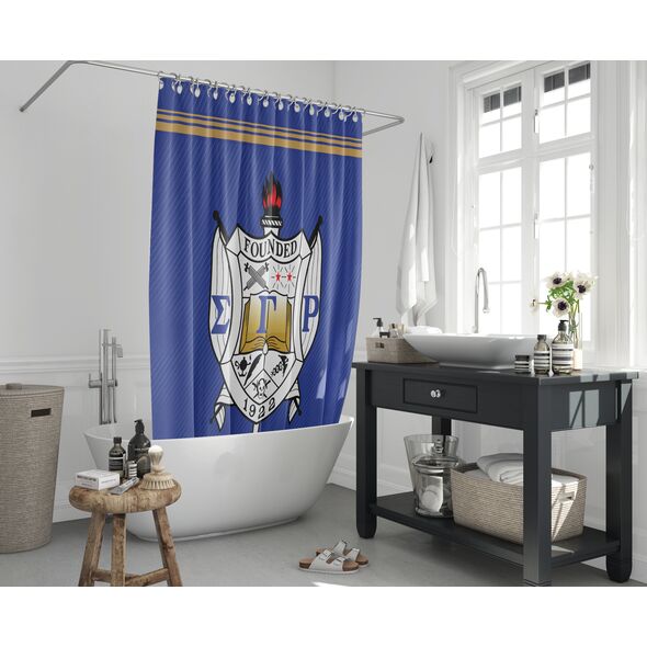 This Sigma Gamma Rho shower curtain offers both visual appeal and practical use. The durable material and long-lasting print make it a reliable Sigma Gamma Rho accessory for home decor. Easy to install and maintain, it adds a meaningful touch to your bathroom while reflecting sorority in a subtle, everyday way. Ideal for use in sorority houses, dorms, or personal residences.