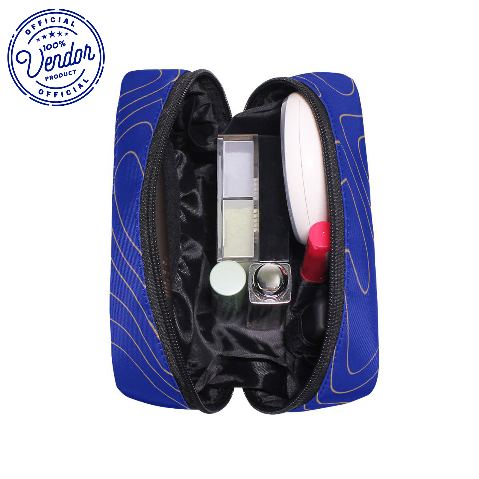 LINED: Lined in a black laminate material, for added durability. Can be used as a pencil case, cosmetic bag or travel bag. This is a soft cosmetic case, also used to store jewelry or other accessories. It has plenty of compartments for storage, and folds flat.