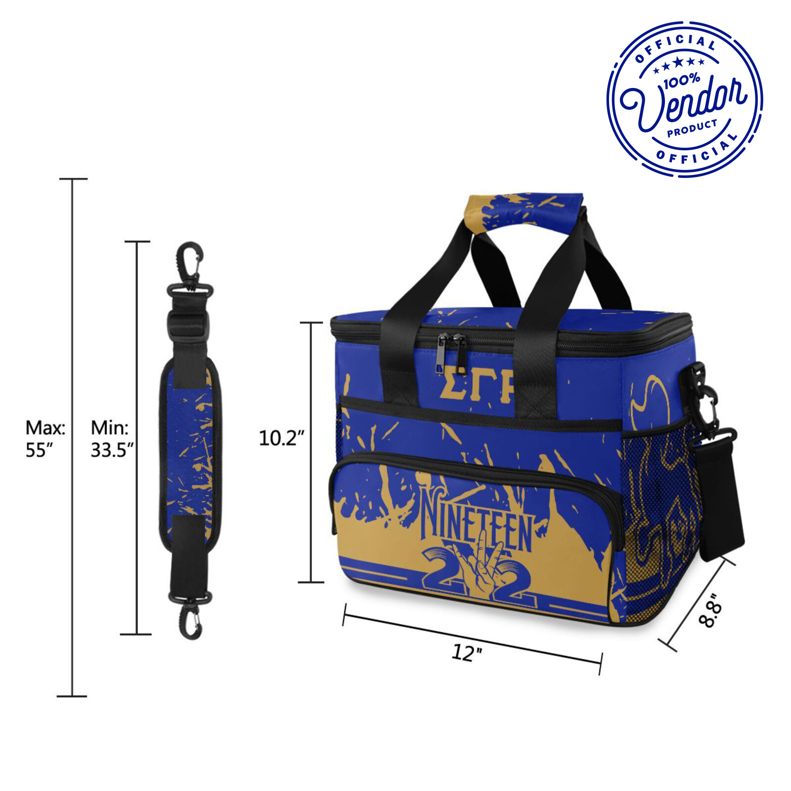 MATERIAL: Made with Polyester and PEVA. It has one main large zipper pocket, two mesh pockets on both sides and a pocket in the front of the bag. With a reinforced handle and a adjustable shoulder strap for you to carry it easily. It can keep cold for 12 hours.