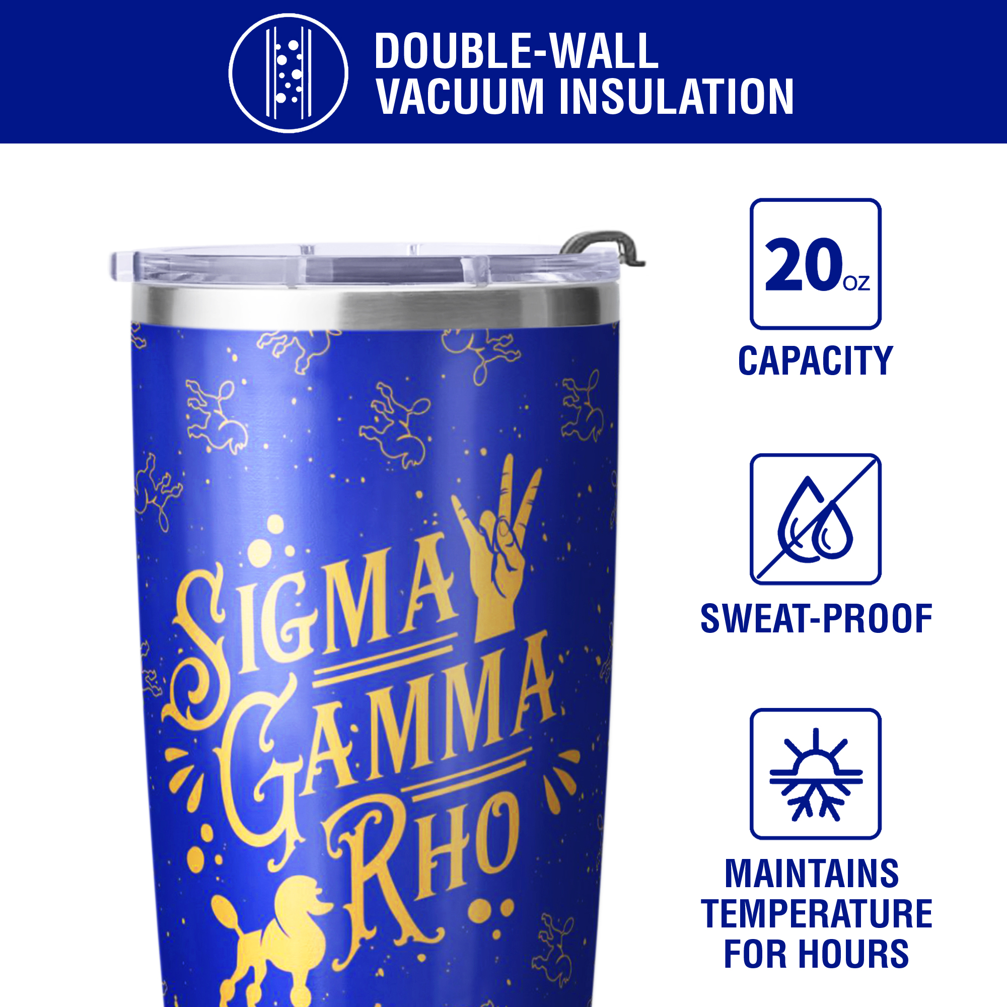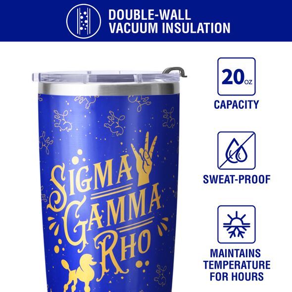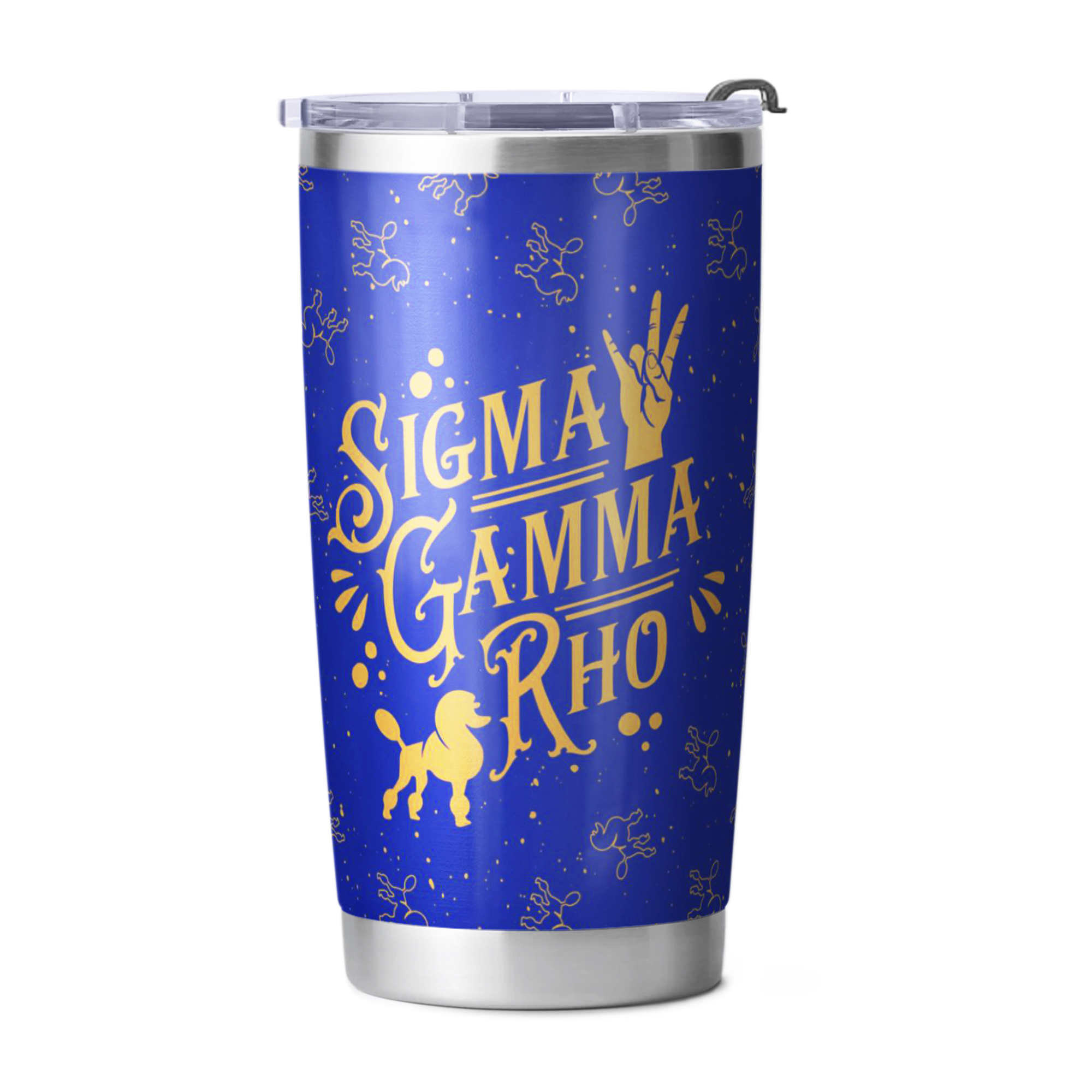 SIGMA GAMMA RHO TUMBLER:This 20 oz stainless steel tumbler features the elegant "Poodle" design, reflecting the values of Sigma Gamma Rho Sorority. Its vibrant and stylish design adds charm and practicality to daily hydration routines.