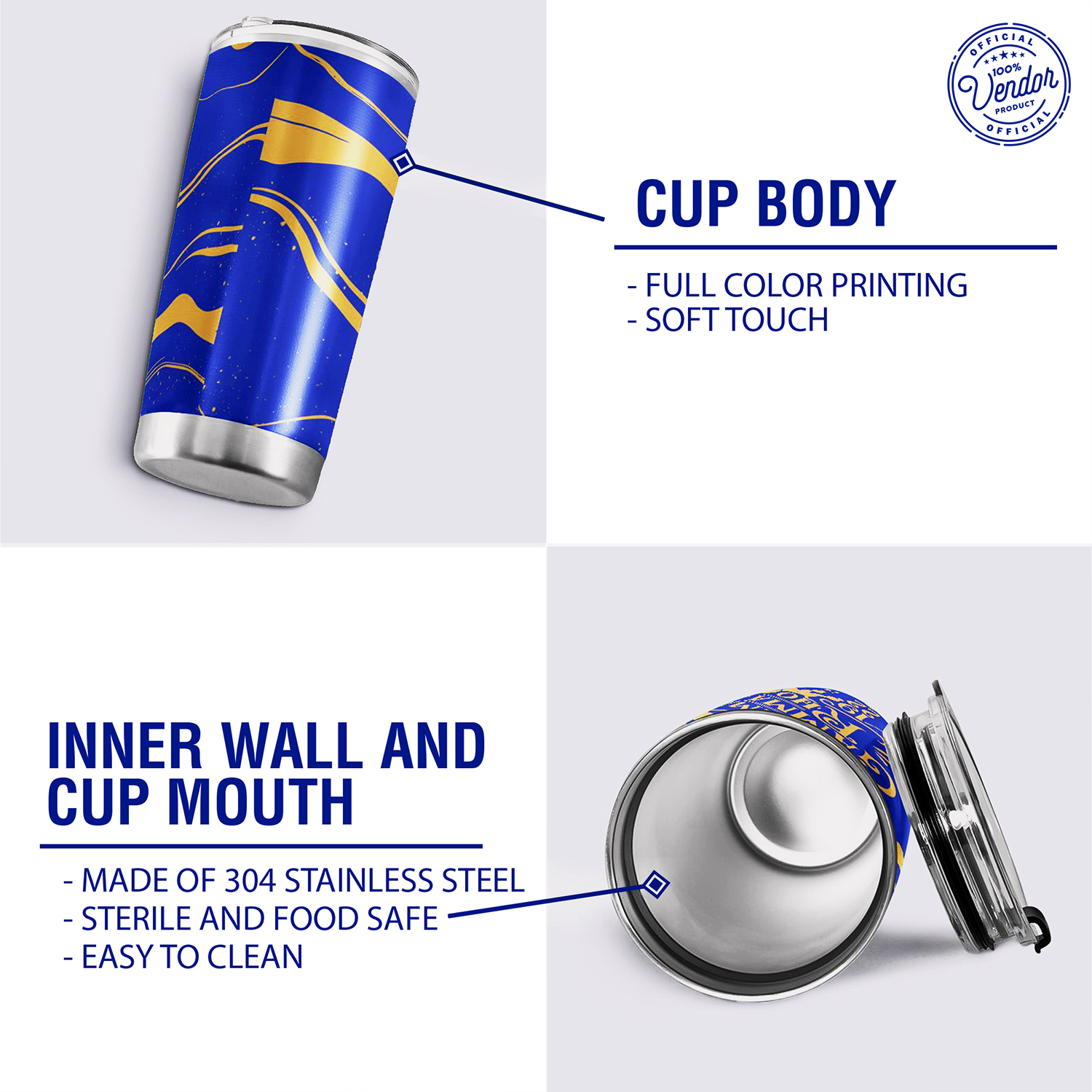 SAFE AND EASY TO MAINTAIN: Made from BPA-free and food-safe materials, this tumbler ensures safe daily use. The smooth inner surface and soft-touch exterior make cleaning quick and effortless while maintaining its vibrant design.