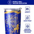 SIGMA GAMMA RHO TUMBLER:This 20 oz stainless steel tumbler features the elegant "SGRho 1922 " design, reflecting the values of Sigma Gamma Rho Sorority. Its vibrant and stylish design adds charm and practicality to daily hydration routines.