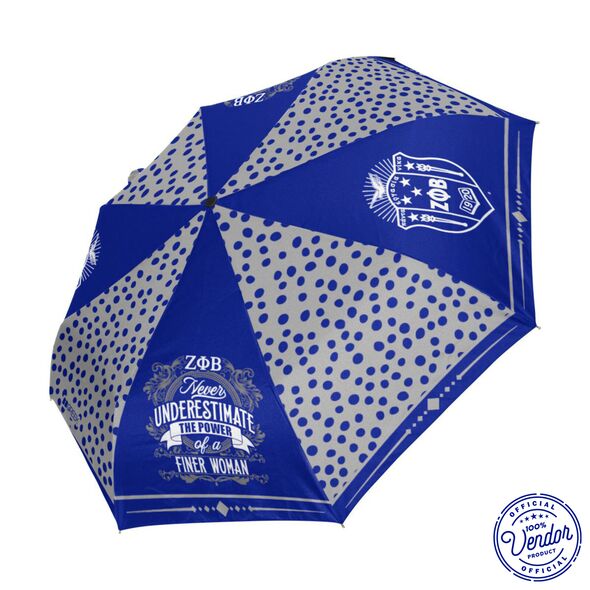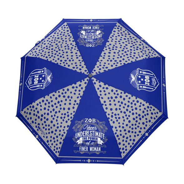 This BBGreek Zeta Phi Beta Sorority umbrella combines functionality with a refined design. Constructed from waterproof polyester, it provides reliable protection from the rain while its sturdy frame ensures long-lasting durability. The compact design allows for easy portability, folding down to 11 inches and fitting seamlessly into bags or backpacks. When opened, it offers a 42.5-inch canopy for ample coverage. This officially licensed umbrella celebrates the Zeta Phi Beta Sorority with the inspiring phrase "Never Underestimate A Finer Woman" displayed proudly on the canopy, ensuring both style and practicality.