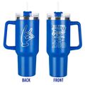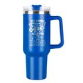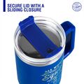 This stainless steel double-wall tumbler holds a generous 40 ounces. The double wall insulation means the outside stays cool and dry with no condensation. It has a secured lid with a sliding closure to take it on the go, making it easy to sip your drinks by mouth or use the straws provided. The tumbler is made of food-grade stainless steel outer material that is BPA-free and non-toxic. Easy to use and clean! Hand wash only to preserve the vibrancy of the finish. Great for indoor or outdoor use.
