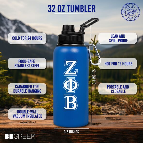 Elevate your daily hydration with the ultimate fusion of durability and Finer Womanhood. This 32 oz stainless steel tumbler is precision-engineered for the ladies of Zeta Phi Beta Sorority, Inc. Built from high-grade stainless steel and finished with a premium Royal Blue powder coat, it features a crisp, silkscreen print of Zeta Phi Beta Greek Letters that refuses to fade, peel, or crack—no matter how busy your schedule gets.