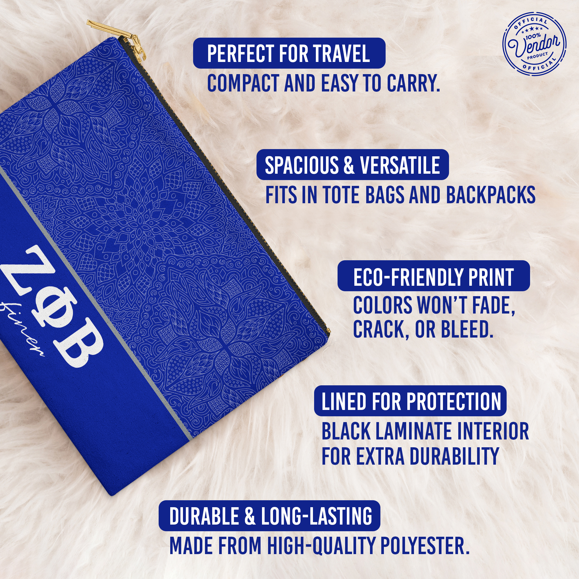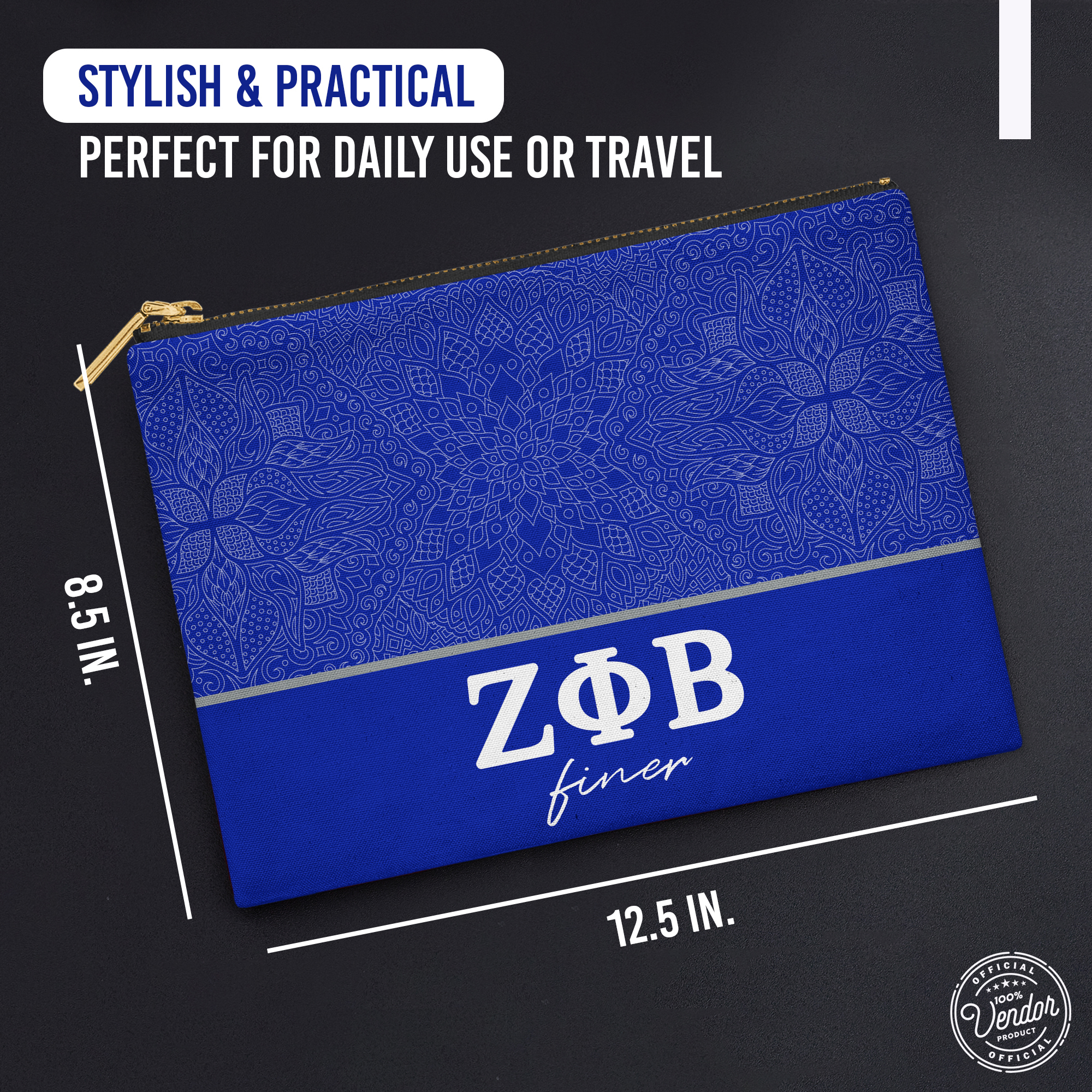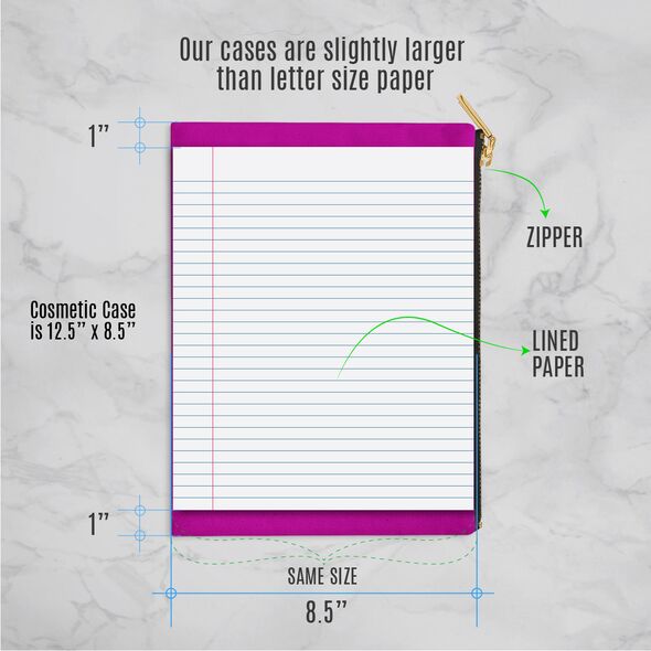 This 12.5” x 8.5” makeup bag combines practicality and durability with a bold, vibrant design. Perfectly sized to hold cosmetics, toiletries, or other essentials, its spacious interior ensures you can stay organized while on the go. Made from high-quality materials, it features a secure metal zipper and a black laminate lining for easy maintenance, offering both functionality and style.