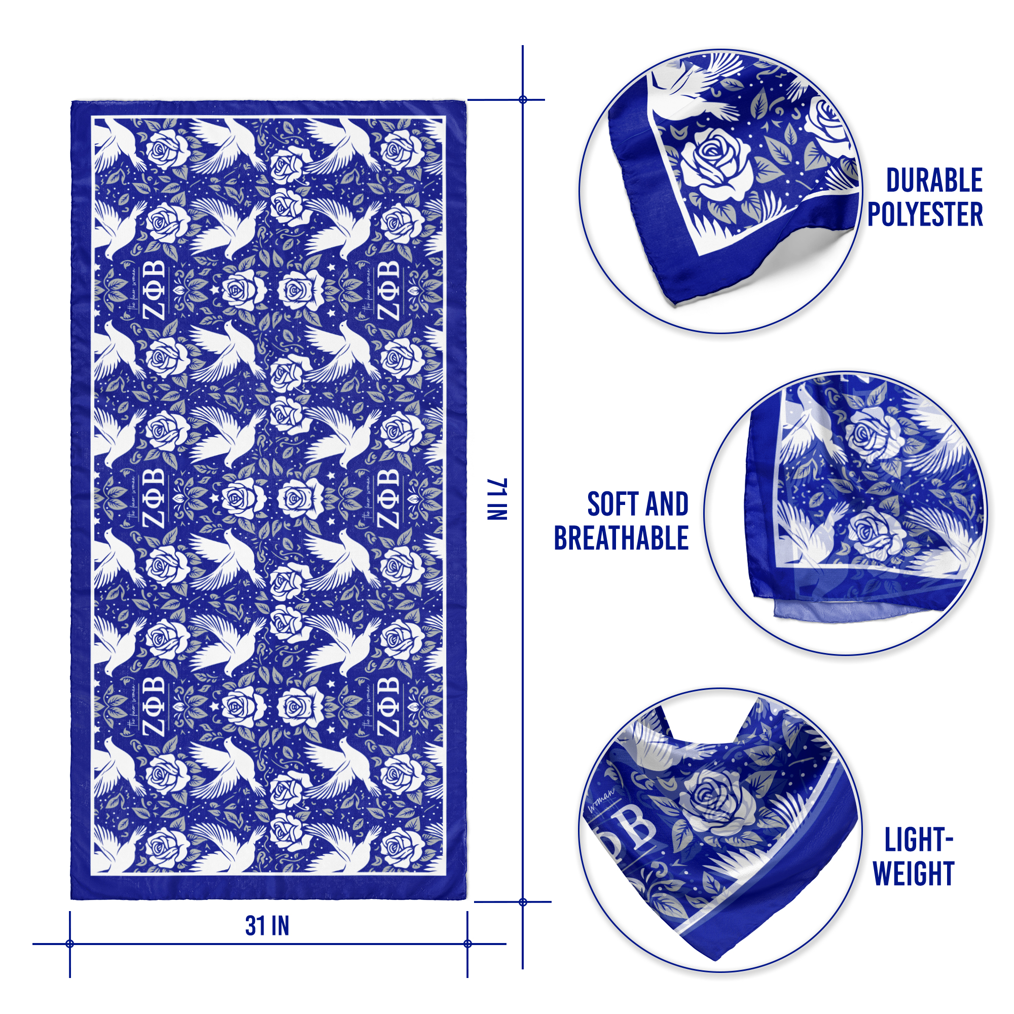 Zeta Phi Beta - Crepe Shawl Scarf - Dove