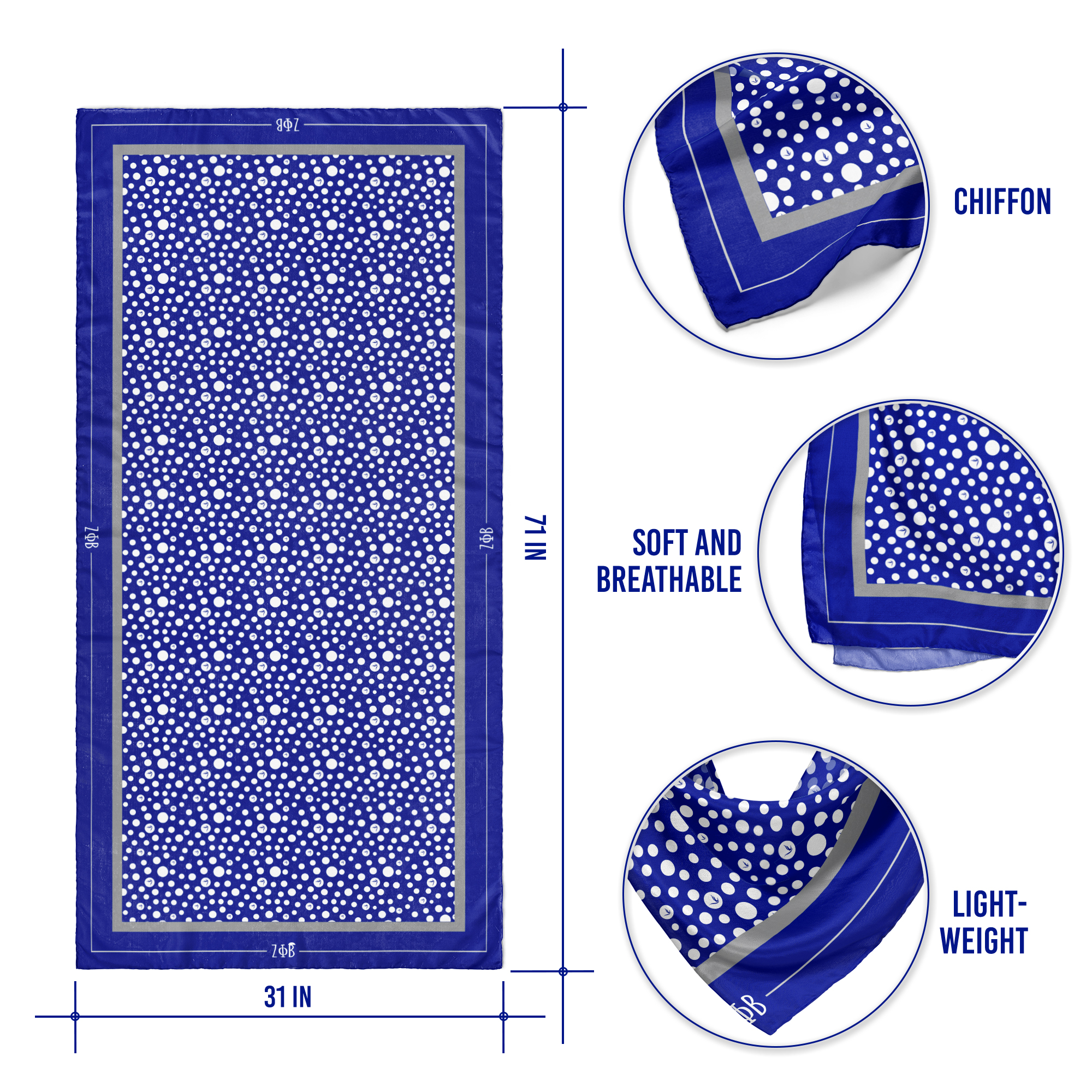 Crafted from crepe chiffon, this scarf is lightweight and soft to the touch. The permanent print resists fading and maintaining its original design over time. The print is on one side of the scarf only. This officially licensed Zeta Phi Beta product reflects the fraternity’s quality standards and attention to detail.
