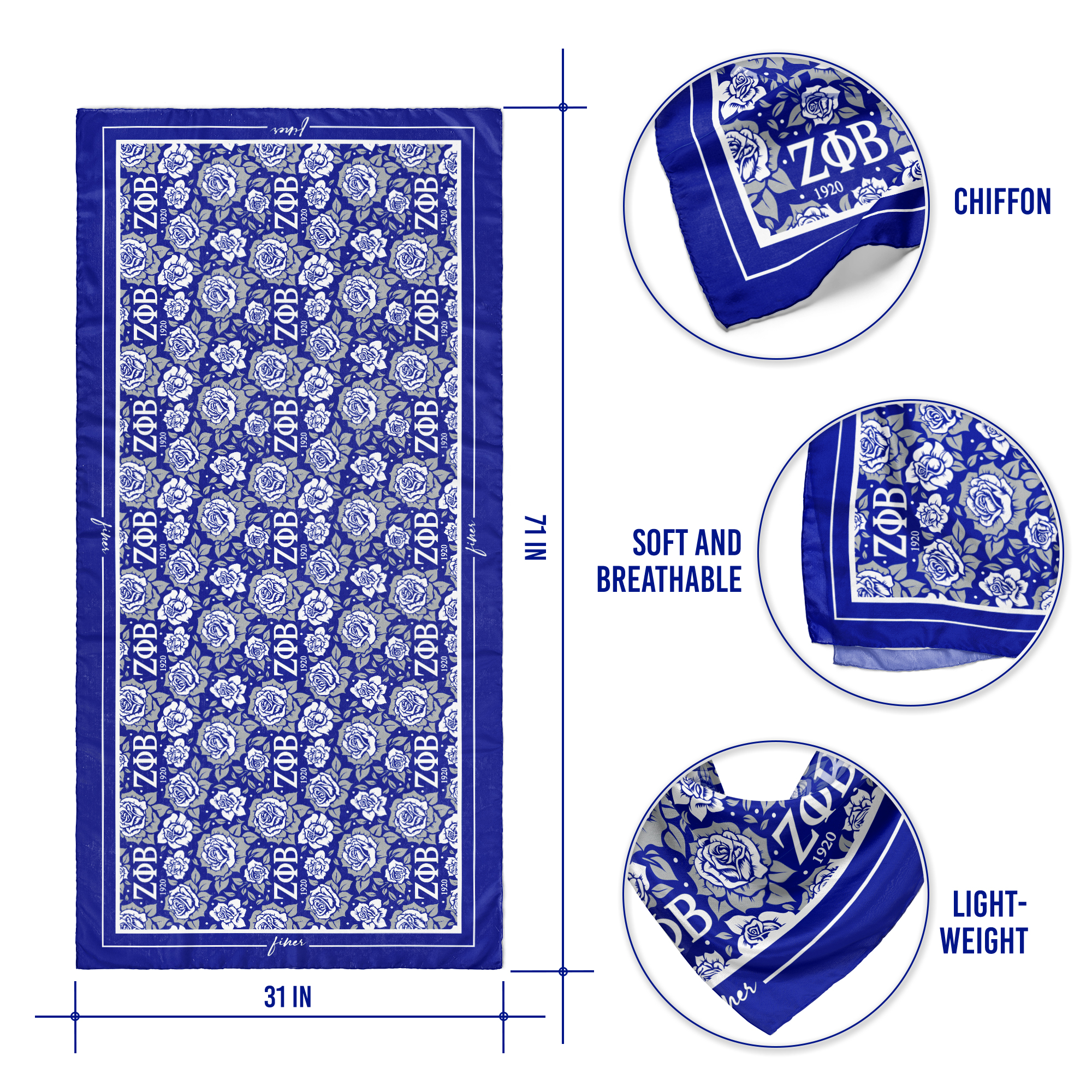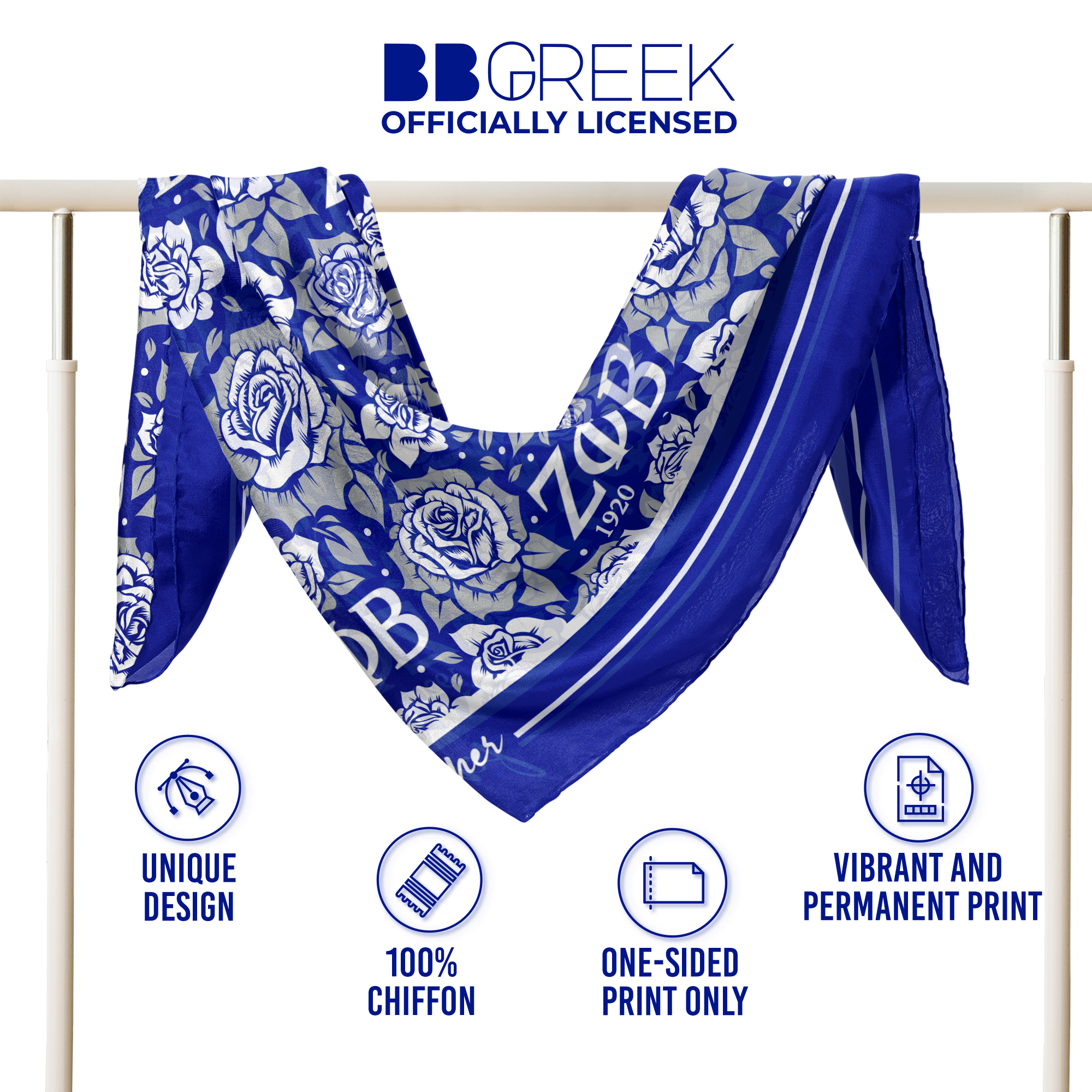 Crafted from crepe chiffon, this scarf is lightweight and soft to the touch. The permanent print resists fading and maintaining its original design over time. The print is on one side of the scarf only. This officially licensed Zeta Phi Beta product reflects the fraternity’s quality standards and attention to detail.