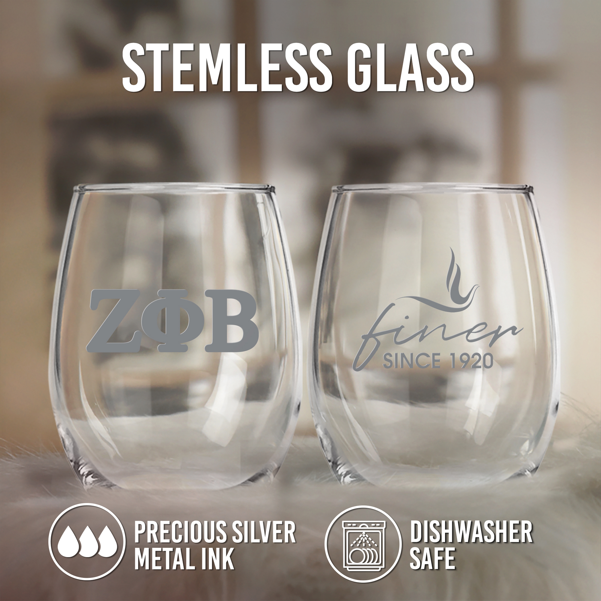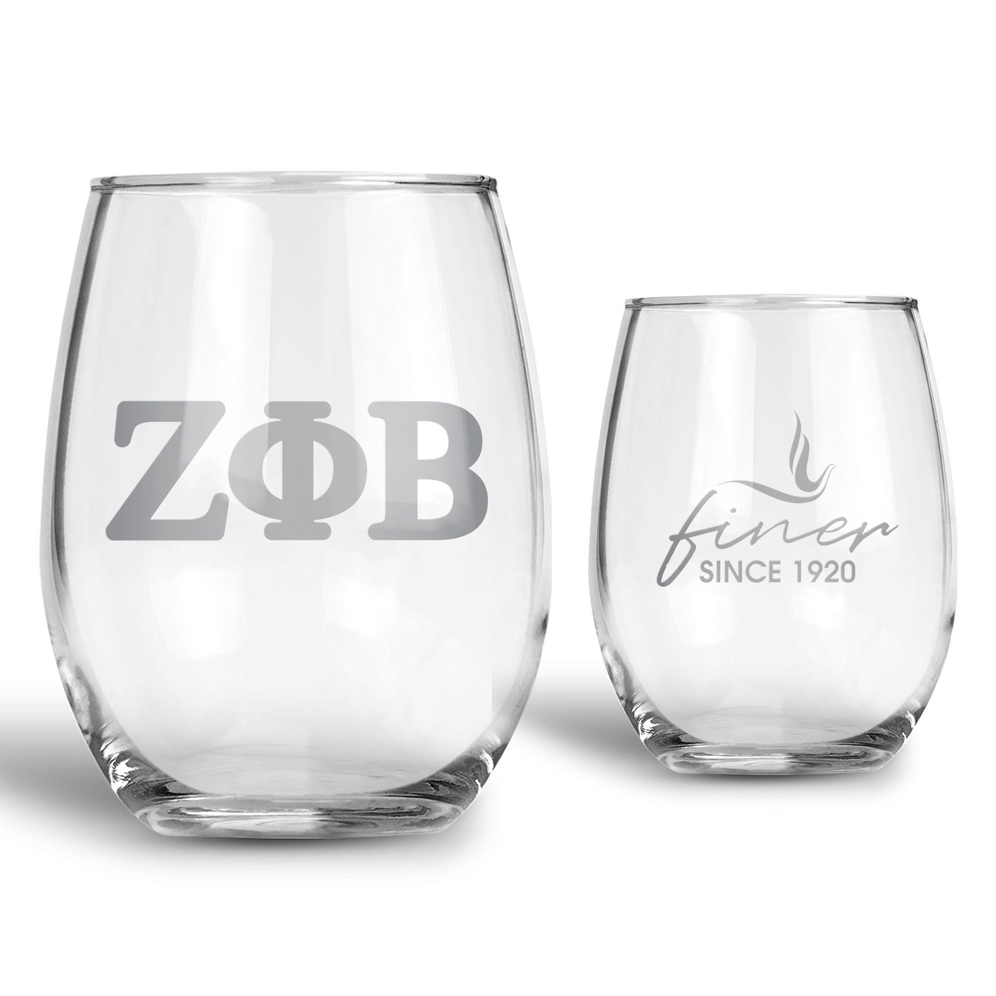 Celebrate Zeta Phi Beta with this premium stemless glass set designed for sorority members, collectors, and gift-givers. This officially licensed set includes two glasses—one featuring the Zeta Phi Beta Greek letters and the other marked with the founding year, 1920. Each glass is printed using non-toxic, food-safe precious metals silver and baked for a permanent finish that resists fading and wear. Whether used at events or given as a thoughtful Zeta Phi Beta gift, this set is a standout piece of Zeta Phi Beta sorority paraphernalia.