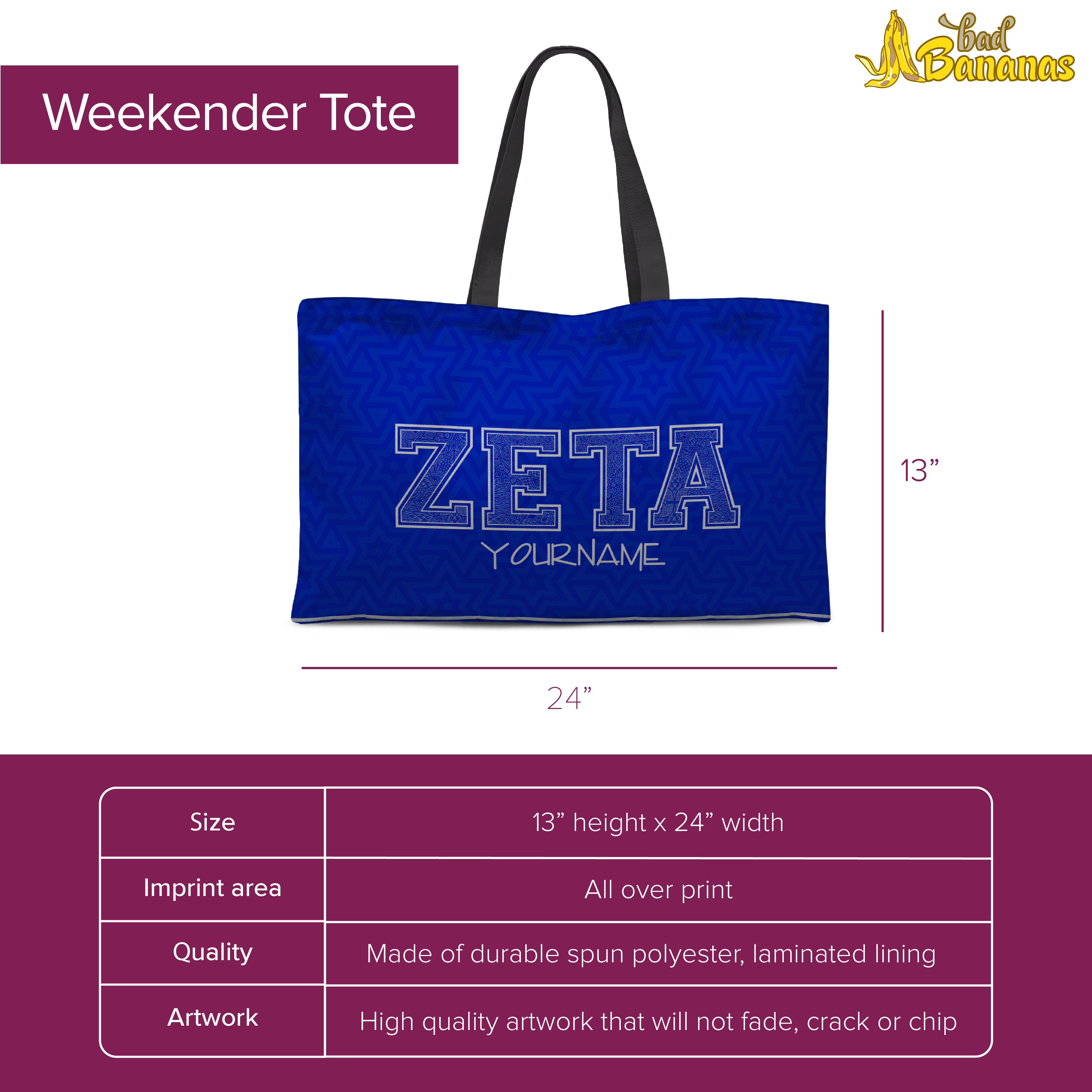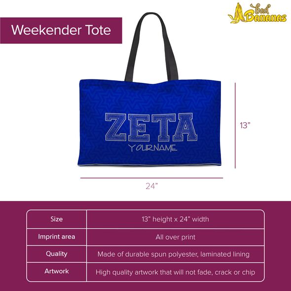 Delight someone you adore with this awesome bag. Performing double duty as an everyday tote or a weekender travel bag with NO zipper closure, this bag is sure to delight the soror you are buying this for.