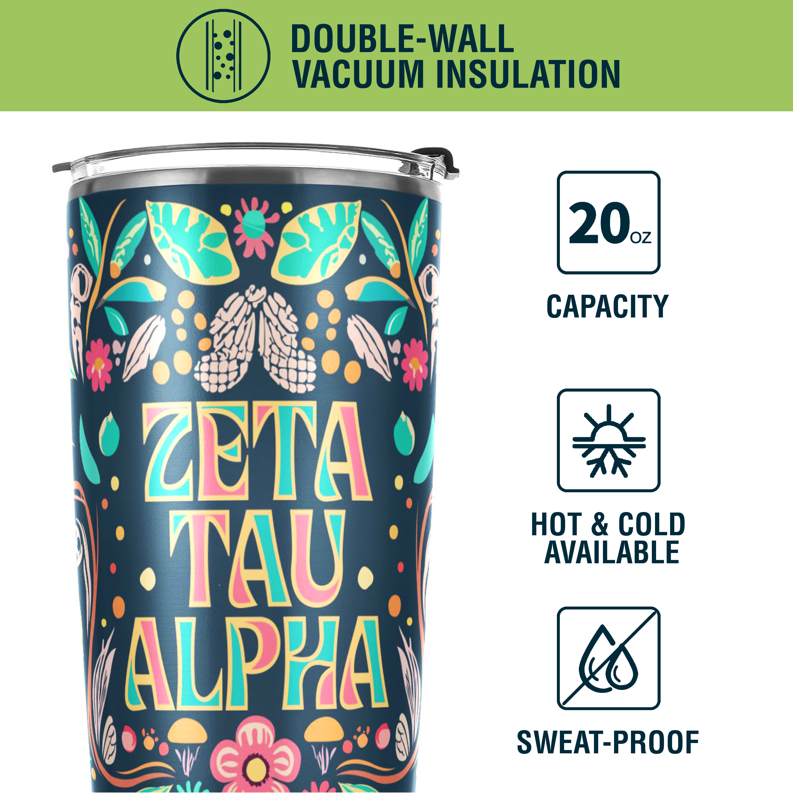 OFFICIALLY LICENSED: This tumbler is an officially licensed Zeta Tau Alpha Fraternity product, crafted to meet the highest standards of quality and authenticity.