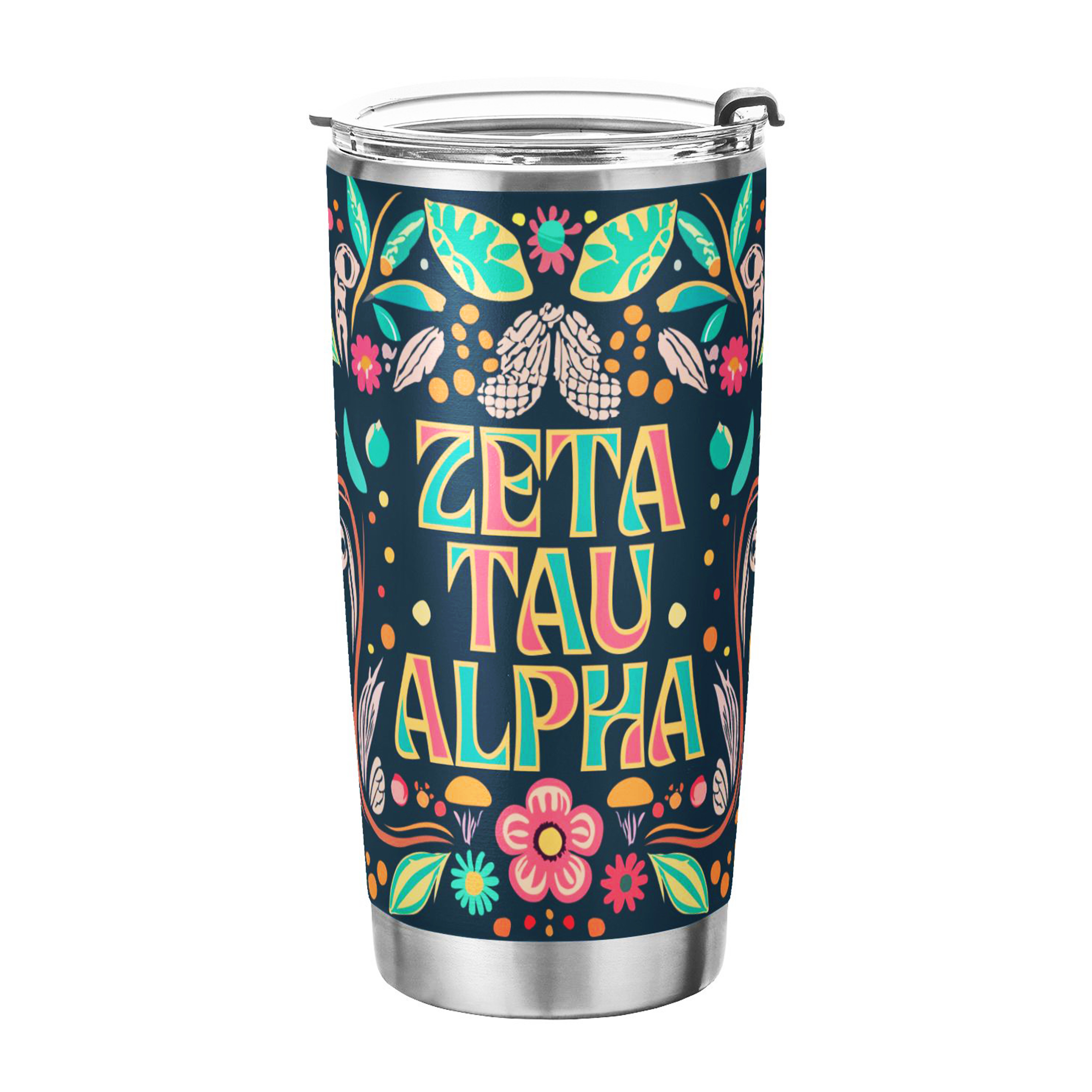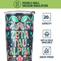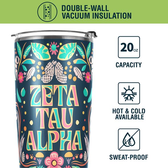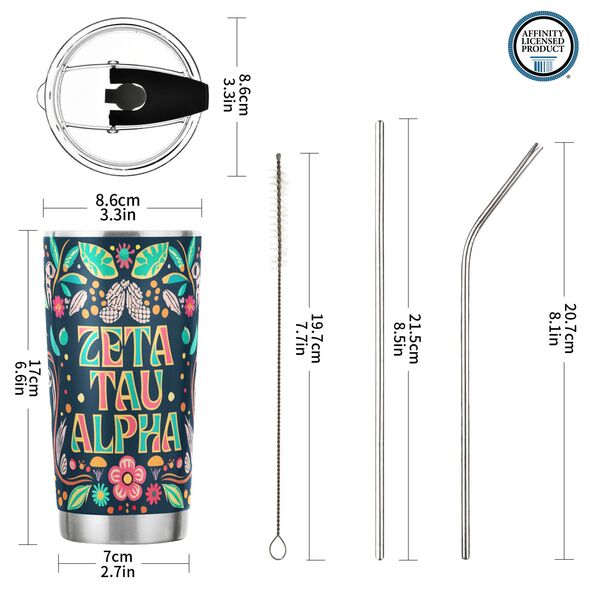 ZETA TAU ALPHA TUMBLER: This 20 oz stainless steel tumbler features the elegant "Colorful" design, reflecting the values of Zeta Tau Alpha Fraternity. Its vibrant and stylish design adds charm and practicality to daily hydration routines.